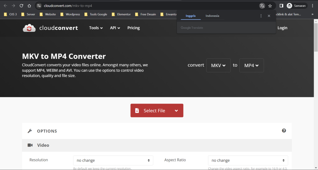 Langkah 2: Kunjungi situs web konversi dari MKV ke MP4, seperti cloudconvert.com/mkv-to-mp4.