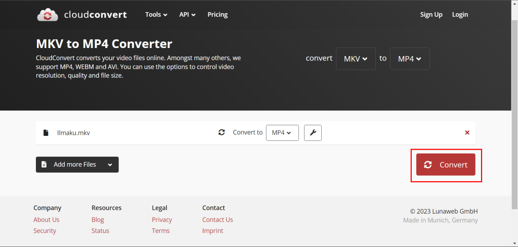 Langkah 4: Tekan tombol “Convert” untuk memulai proses konversi dari MKV ke MP4.
